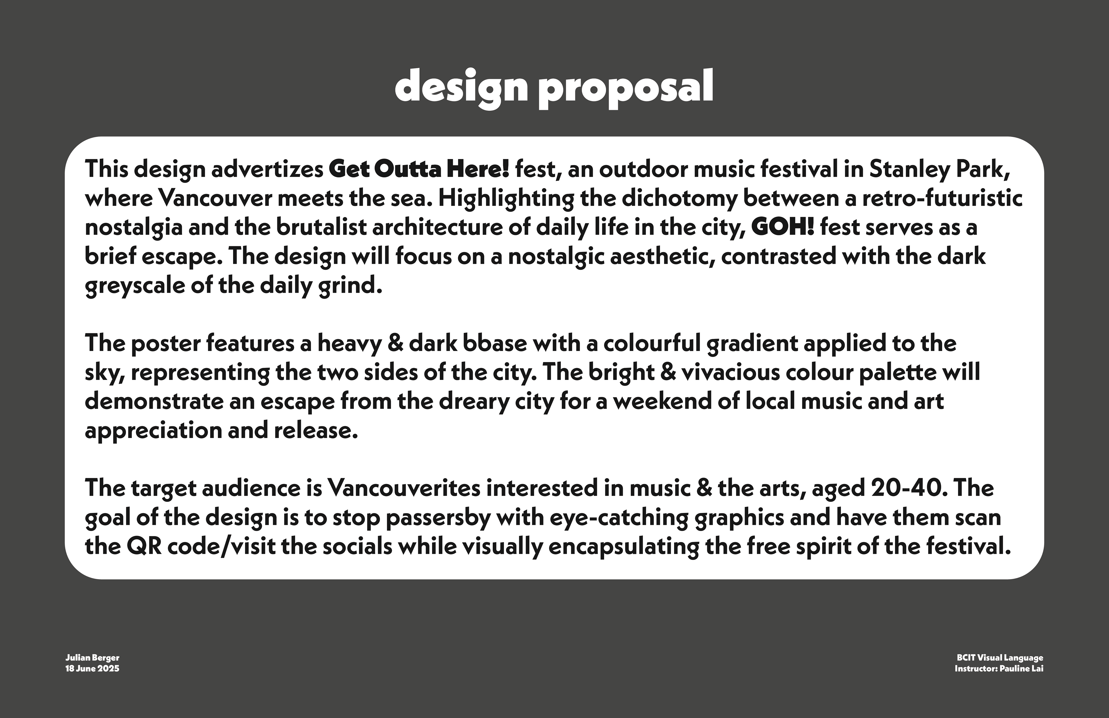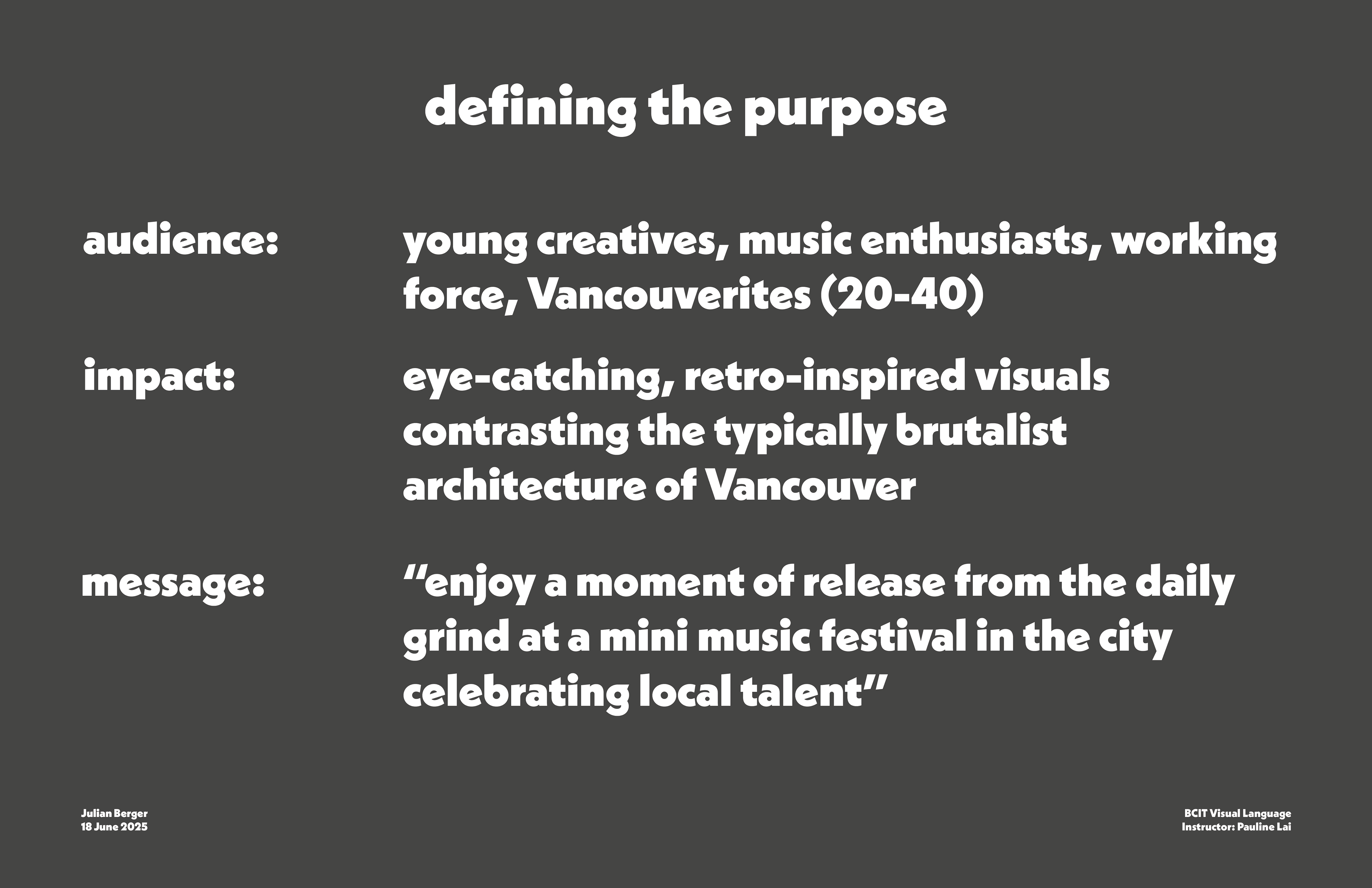 Concert poster design for BCIT's Visual Language course. Designed in Adobe Illustrator.
